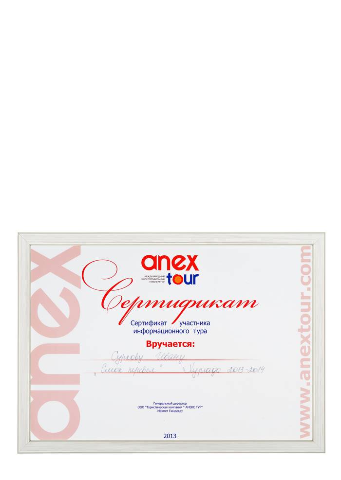 Сертификат соответствия № BY/112 04.03. 071.01 00109 выдан ГУ «Национальное агентство по туризму» Министерства спорта и туризма Республики Беларусь. Компания Travel House прошла добровольную сертификацию услуг. Ежегодно аудиторы ГУ «Национальное агентство по туризму» проверяют офисы продаж, уровень квалификации специалистов компании, внутреннюю документацию, договоры оказания туристических услуг, стандарты работы и подтверждают соответствие услуг компании актуальным требованиям Закона о туризме и другому законодательству Республики Беларусь.